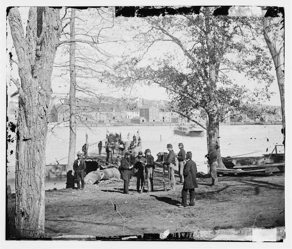 Inspecting a pass at the Mason's Island ferry landing. From Library of Congress.